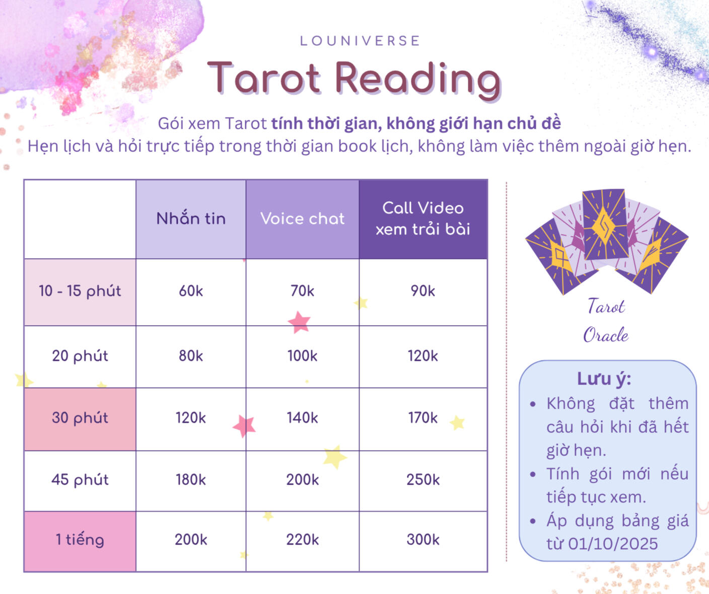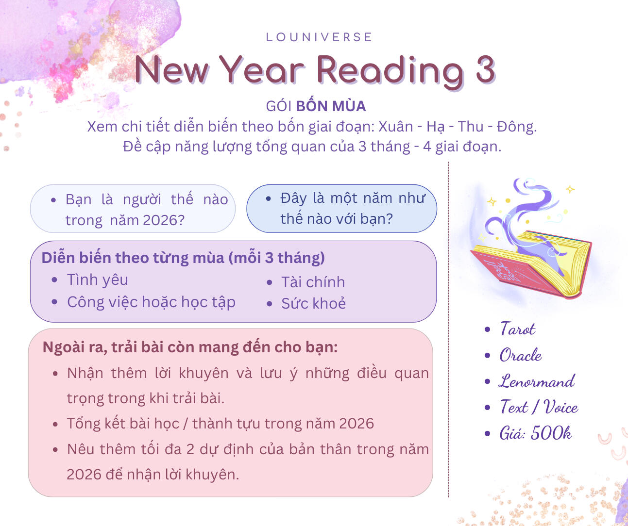 💜 Tham khảo 5 bộ bài và liên hệ với sốp tại Fanpage để book thông điệp 💜