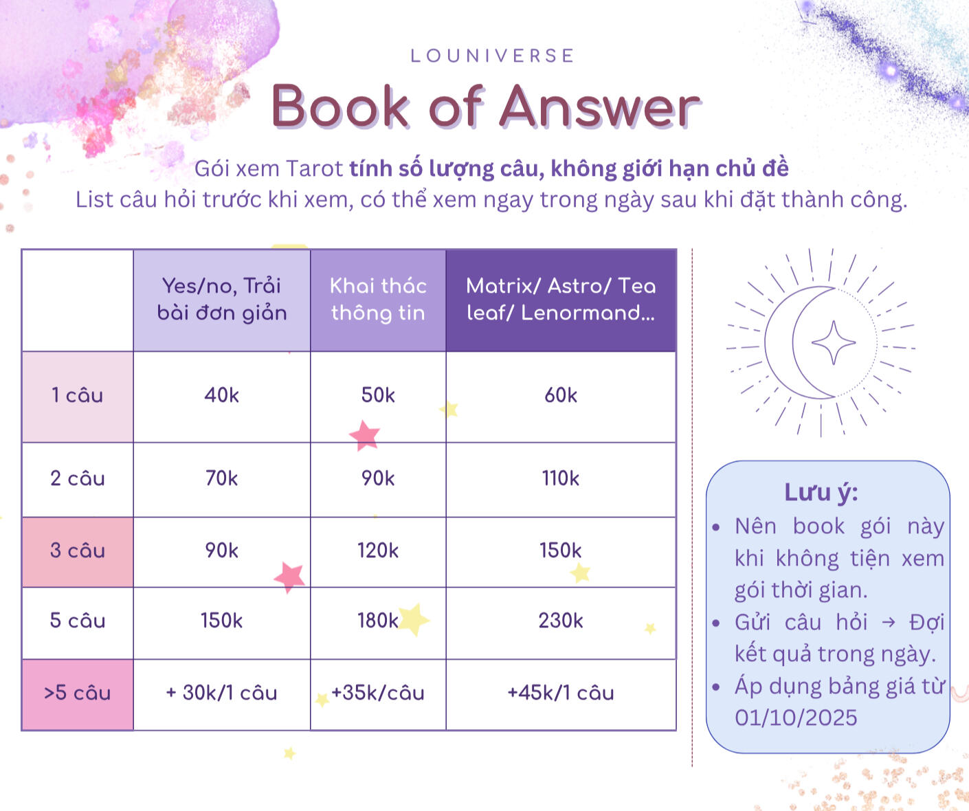 - Với các tình iu đã book gói New year 2026: chỉ 40.000 đ cho thông điệp đầu tiên.